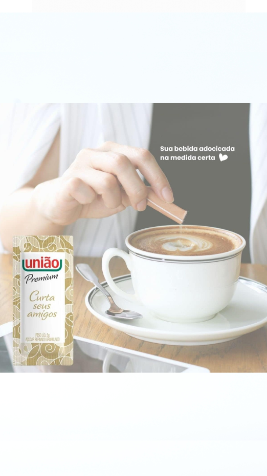 Açúcar refinado União Premium em sachês individuais de 5g, caixa com 400 unidades. Mais higiene, elegância e praticidade para serviços de café, hotéis e ambientes corporativos.