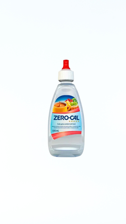 Adoçante líquido Zero-Cal 100ml, com ciclamato e sacarina, ideal para quem busca reduzir calorias com sabor doce e agradável. Perfeito para bebidas e receitas.