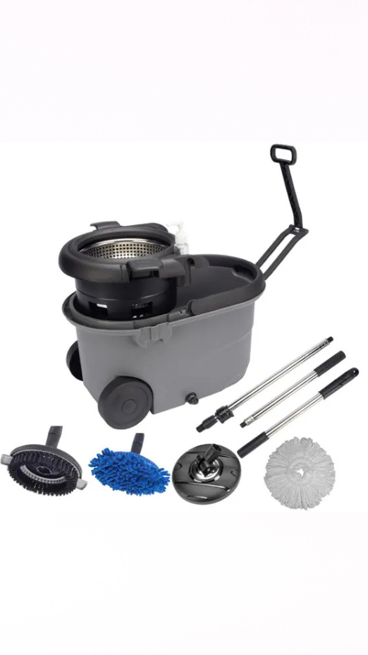 Conjunto com balde, cesto em aço inox e esfregão tipo mop úmido. Ideal para limpeza doméstica e profissional, proporciona maior eficiência na higienização com menos esforço.