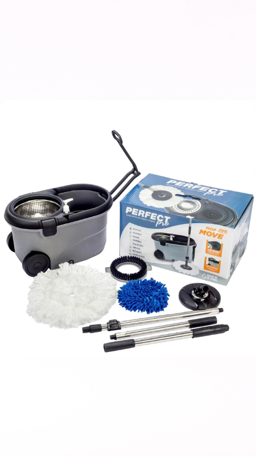 O Balde com Cesto Inox e Esfregão Mop Úmido Move é a solução ideal para quem busca eficiência, agilidade e higiene em tarefas de limpeza. Equipado com um cesto centrífugo em aço inox, permite a secagem do esfregão com maior durabilidade e resistência ao uso contínuo.