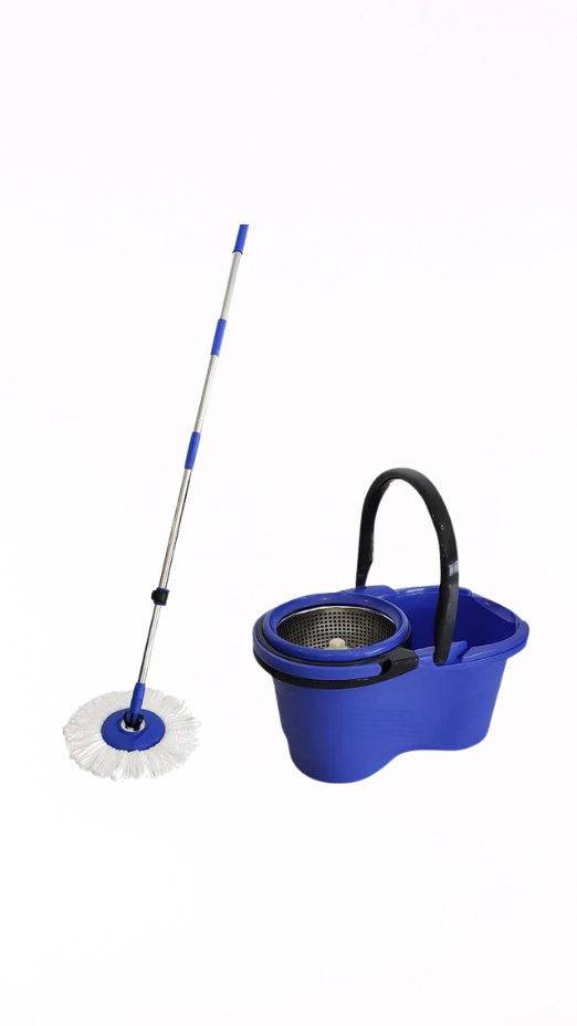 Kit com balde resistente, cesto centrífugo em inox e esfregão tipo mop úmido. Indicado para uso profissional, oferece alta eficiência, durabilidade e praticidade na limpeza de grandes áreas.