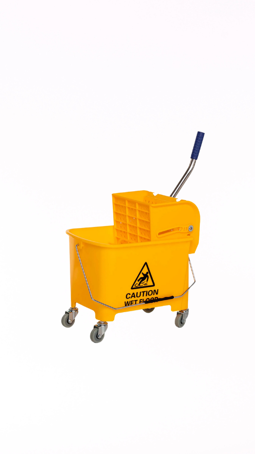 Com capacidade de 20 litros, é ideal para ambientes como hospitais, escolas, shoppings, empresas e indústrias. A alça anatômica e o design ergonômico facilitam o transporte e o manuseio, enquanto o espremedor permite maior controle da umidade do mop, prevenindo excessos de água no piso.