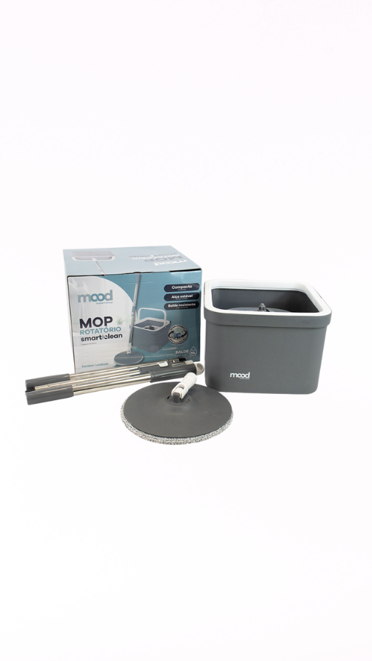O Balde Mop Rotatório Quadrado 10L Mood é uma solução prática e funcional para tornar a limpeza doméstica mais rápida e eficiente. Com um design moderno nas cores cinza e branco, oferece capacidade de 10 litros e estrutura compacta, ideal para espaços residenciais.
