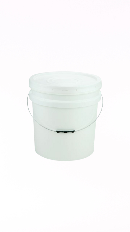 Balde plástico com capacidade de 30 litros, na cor branca, com tampa de segurança. Ideal para armazenar e transportar líquidos ou produtos diversos com proteção e praticidade.