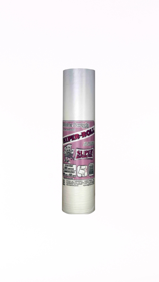 Bobina plástica picotada Hiper-Roll com 400 sacos de 40x60cm, ideal para embalar produtos diversos com higiene e agilidade em ambientes comerciais.