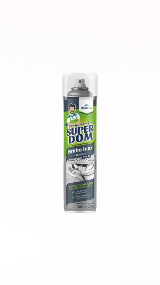 O Brilha Inox Dom Line 300ml/200g (Super Dom) é indicado para a limpeza e manutenção de superfícies em aço inoxidável, como eletrodomésticos, coifas, pias, geladeiras, elevadores e outros itens metálicos. Sua fórmula especial remove marcas de dedos, gordura e sujeiras leves, formando uma película protetora que evita manchas e facilita limpezas futuras.