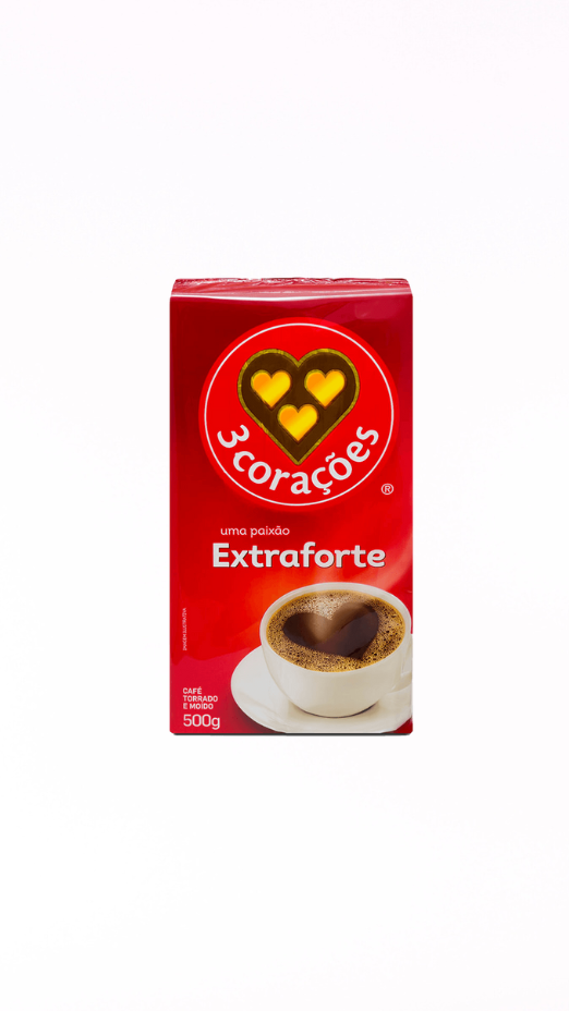 Café 3 Corações Extra Forte 500g, ideal para quem aprecia um sabor intenso e encorpado, perfeito para começar o dia com energia.