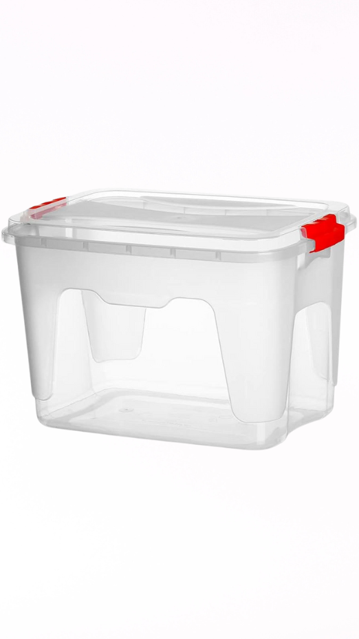 Caixa organizadora robusta com capacidade de 30 litros, ideal para armazenar diversos itens de forma prática e segura.