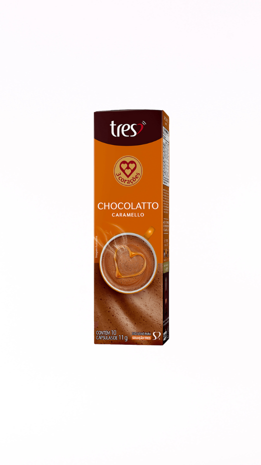 Cápsulas de bebida sabor chocolate com caramelo da 3 Corações, cremosas e aromáticas, compatíveis com máquinas TRES®.