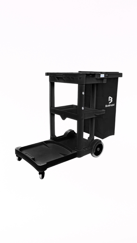 O Carro Funcional com Bolsa América Black Bralimpia é indicado para operações de limpeza que exigem mobilidade, organização e eficiência. Desenvolvido com materiais duráveis e resistentes, possui design compacto, rodas que facilitam o deslocamento e uma bolsa coletora de alta capacidade. Ideal para o transporte de produtos de limpeza, ferramentas e coleta de resíduos, o modelo América da Bralimpia alia praticidade e desempenho em um só equipamento.