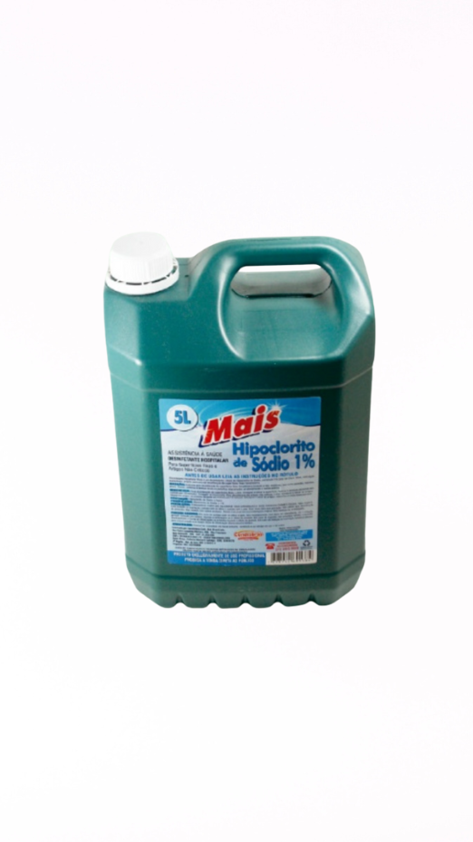 Cloro líquido com 1% de concentração, ideal para desinfecção de ambientes e superfícies. Embalagem de 5 litros para maior economia e eficiência.