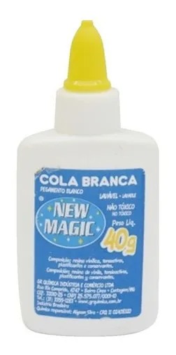 Cola Branca New Magic 40 Gramas A base de acetato de polivinia, lavavel e não toxica Para colagens depapel, papel cartão e cartolina.