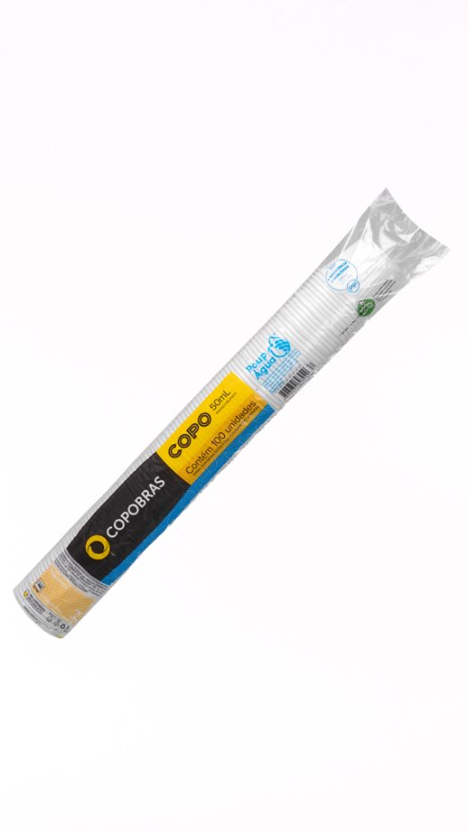 Copo descartável de 50ml Copobras, feito em polipropileno (PP), embalagem com 100 unidades. Ideal para doses individuais e degustações.