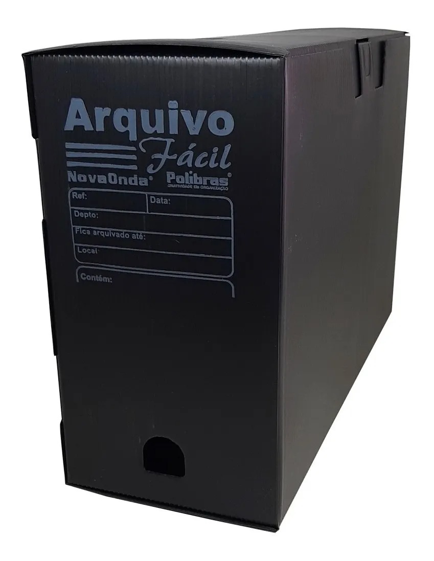 Evite que seus documentos e papéis peguem poeira ou umidade! Com o arquivo morto você consegue de forma prática e fácil armazenar seus documentos. É desmontável, com impressão em três lados, confeccionado em plástico corrugado, com estrutura alveolar, cortada em molde provido de vincos que possibilitam dobras, de modo a formar uma caixa de formato prismático retangular com furos laterais para ventilação.