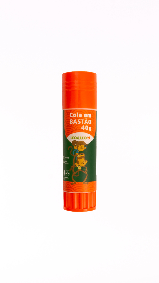 Cola bastão de 40g da marca Leonora, ideal para colar papéis, fotos e materiais leves com praticidade e sem sujeira.