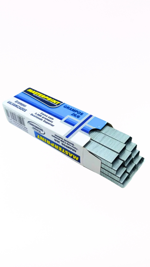 Os Grampos 26/6 Galvanizados Masterprint oferecem excelente performance para o dia a dia em escritórios, escolas e ambientes corporativos. Fabricados em arame de aço com tratamento galvanizado, garantem maior resistência à oxidação e precisão no grampeamento. Compatíveis com grampeadores que utilizam o padrão 26/6, eles são ideais para prender até 20 folhas de papel (75g/m²) de forma firme e segura. A embalagem com 5.000 unidades é econômica e ideal para uso frequente.