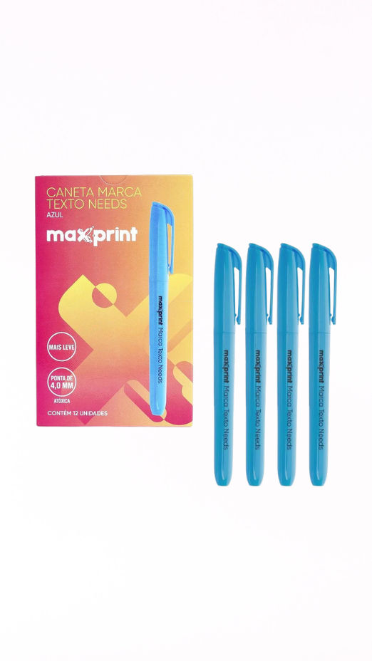 Marca texto azul de alta visibilidade, ideal para destacar textos e informações importantes com traço uniforme e secagem rápida.
