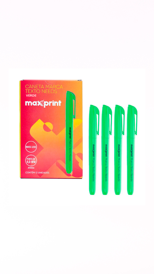 O Marca Texto Verde é um acessório essencial para estudantes, profissionais e leitores que precisam ressaltar informações importantes com clareza e eficiência. Com ponta chanfrada, permite traços finos e largos, adaptando-se às necessidades de destaque. Sua tinta de secagem rápida evita borrões, garantindo marcações nítidas e duradouras. O design ergonômico e corpo resistente asseguram conforto no uso prolongado. A cor verde proporciona um destaque diferenciado, perfeito para codificação visual e organização de informações.