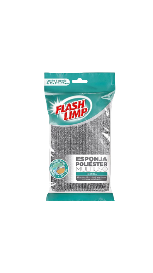 Esponja multiuso feita em poliéster, ideal para a limpeza do dia a dia. Leve, resistente e versátil, indicada para diversas superfícies sem riscar. Produto da linha de alta qualidade FlashLimp.