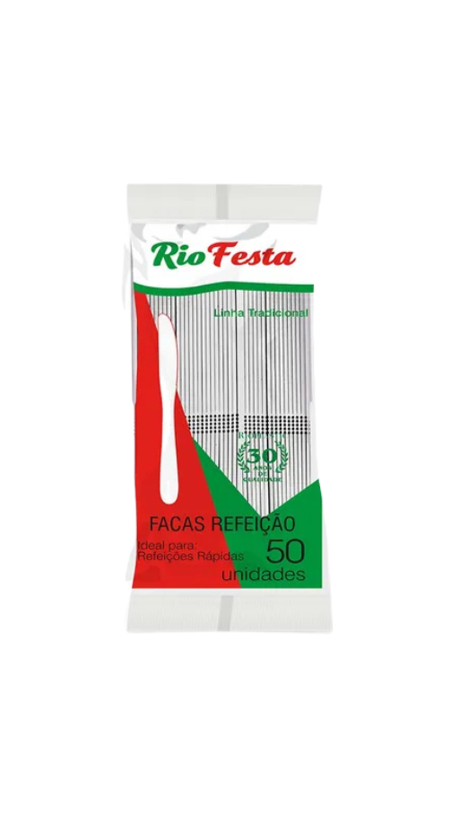 O Conjunto Faca Refeição Cristal com 50 unidades oferece praticidade e higiene para o consumo de alimentos em diversas ocasiões. Fabricadas em plástico resistente e com acabamento cristal transparente, as facas proporcionam boa performance e conforto ao cortar alimentos em eventos, confraternizações, buffets e restaurantes. Produto descartável, facilita a limpeza e o descarte, sendo indicado para uso doméstico e profissional. Ideal para quem busca solução rápida e eficiente em utensílios descartáveis.