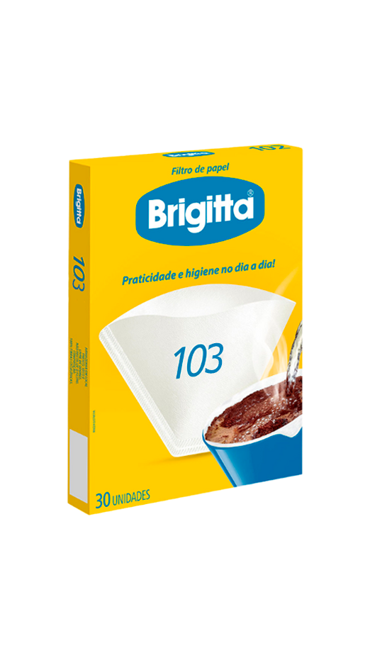 Filtro de papel tamanho 103, compatível com cafeteiras tipo Melitta, ideal para preparo de café coado com praticidade e sabor. Embalagem com 30 unidades.