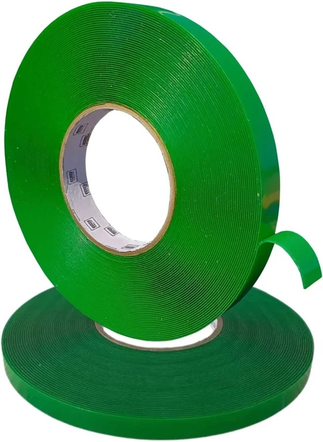 Fita dupla face acrílica de 18 mm de largura por 20 metros de comprimento, com alta aderência para fixações firmes e duradouras em diversas superfícies.