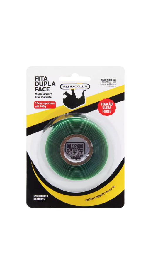 A Fita Dupla Face Fixa Forte 19mm x 2m da Rendicolla é desenvolvida com adesivo acrílico de alto desempenho, proporcionando fixação segura e durável em superfícies como vidro, madeira, metal, plástico e cerâmica. Substitui pregos e parafusos em pequenas instalações e montagens, garantindo um acabamento limpo e sem sujeira. Indicada para uso interno em ambientes residenciais, corporativos ou industriais leves, a fita é fácil de aplicar e oferece excelente resistência à tração e à umidade moderada.
