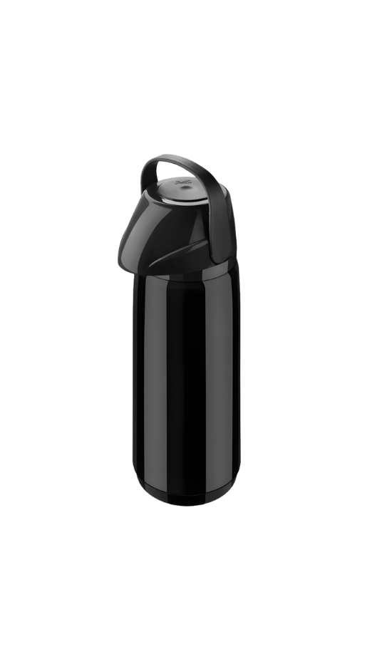 Garrafa térmica com capacidade de 1,8 litros, sistema de acionamento por pressão (press), ideal para servir bebidas quentes ou frias com praticidade e segurança. Design elegante na cor preta, da marca Invicta.