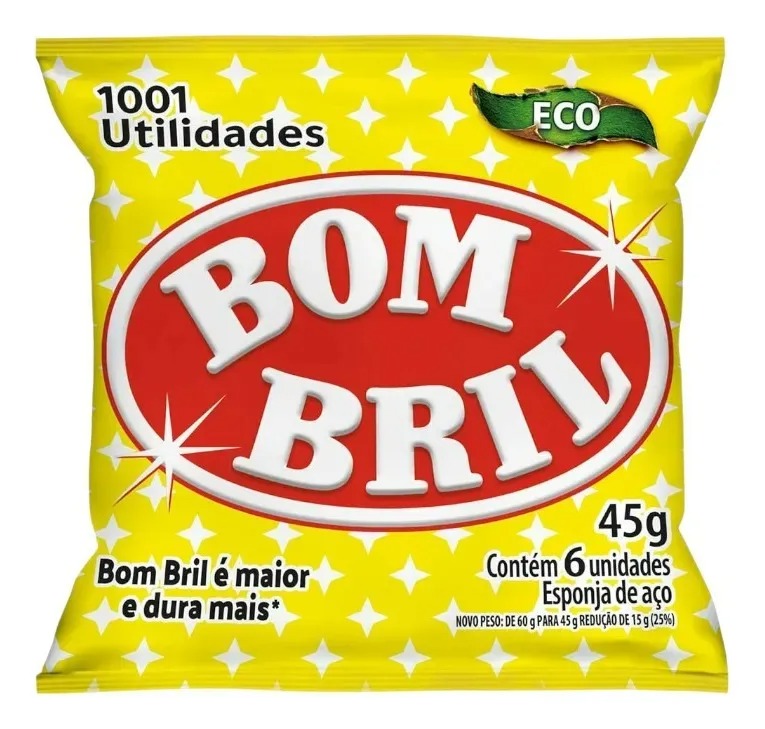 A Esponja de Aço Bom Bril 1001 utilidades, limpa superfícies, dá brilho e remove as sujeiras mais difíceis, sem riscar. É higiênica e ecológica, pois se degrada, vira ferrugem e desaparece na natureza, sem deixar resíduos, sem acumular bactérias e sem agredir a natureza