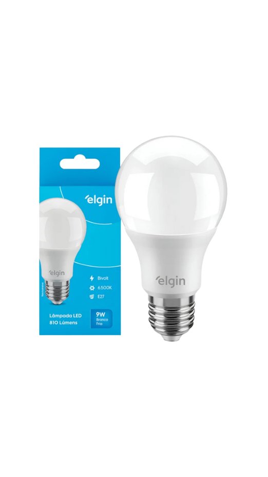 Lâmpada LED 9W da marca Elgin, eficiente, econômica e com excelente durabilidade, ideal para iluminação residencial e comercial.