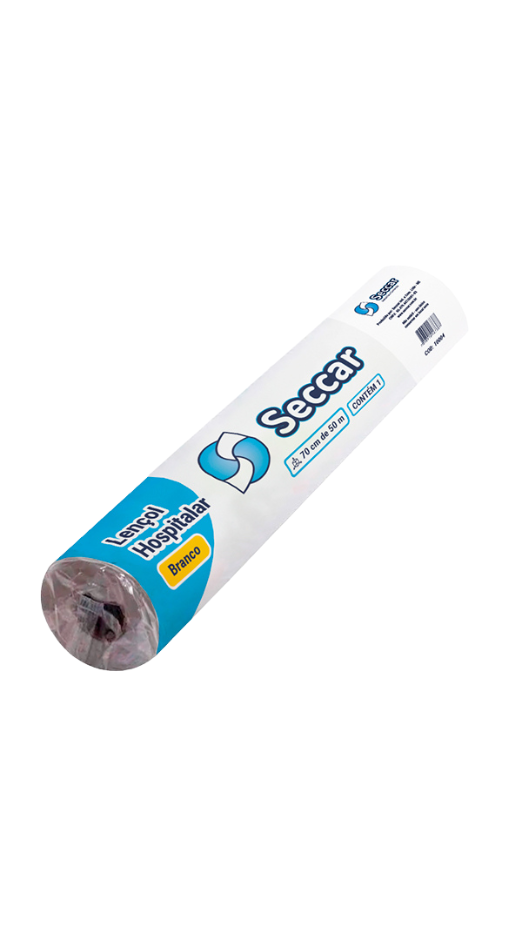 Lençol hospitalar branco produzido pela Seccar, apresentado em rolo com 0,50 m de largura e 50 m de comprimento. Produto descartável, indicado para uso em hospitais, clínicas e estabelecimentos de saúde, proporcionando higiene e proteção durante procedimentos médicos. Fabricado com material resistente e de qualidade, assegura conforto e segurança para pacientes e profissionais da saúde.