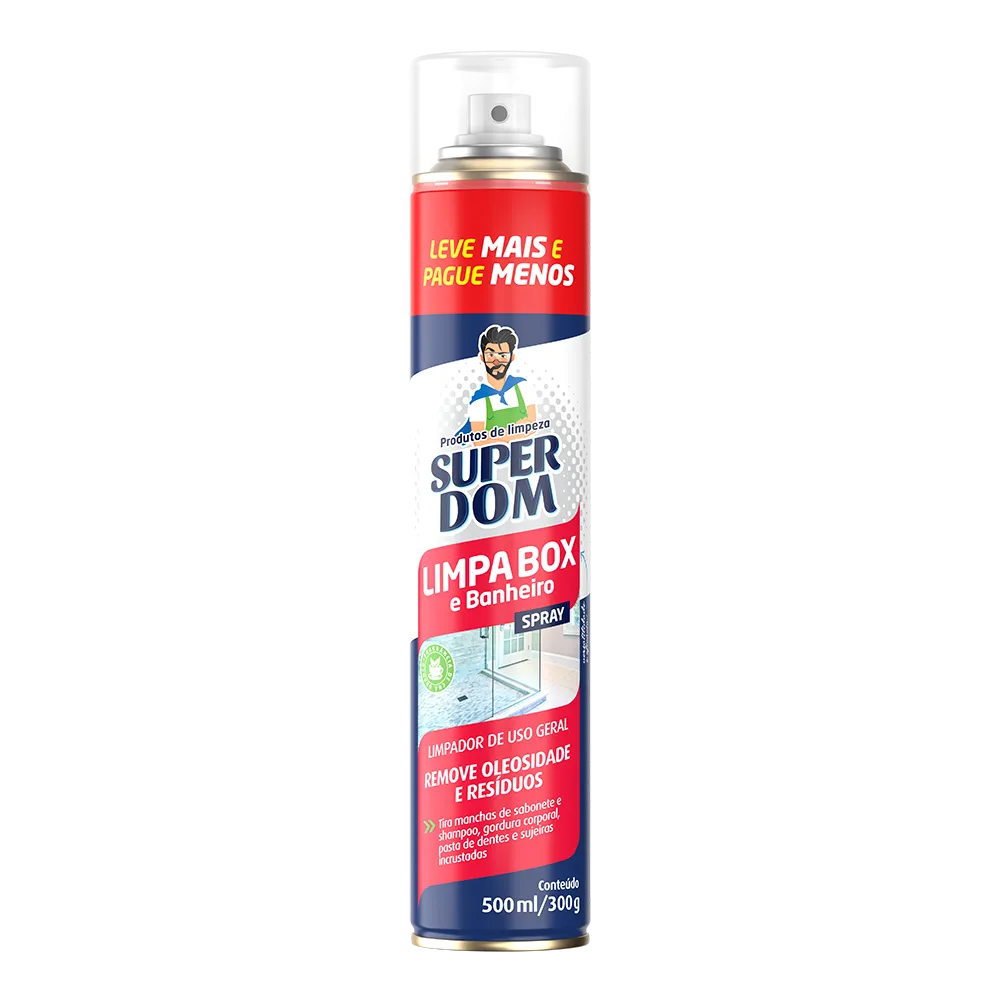 Limpa Box e Banheiro Super Dom pode ser utilizado em espelhos, azulejos, vidros e diversas superfícies laváveis, removendo com rapidez e eficiência manchas e resíduos de sabonete e shampoo, gordura corporal, pasta de dentes e sujeiras incrustadas. Ainda dá brilho e deixa o ambiente com aroma agradável de chá branco.