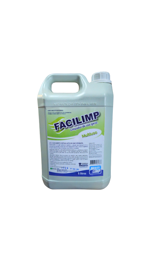 O Limpador Multiuso Facilimp 5L é um poderoso desengordurante, indicado para a limpeza eficiente de pisos, azulejos e outras superfícies laváveis. Sua fórmula concentrada proporciona alto rendimento, sendo eficaz na remoção de todo tipo de sujidade, deixando os ambientes limpos e com aroma agradável.