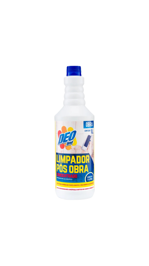 O Limpador Pós Obra Deoline 1L foi desenvolvido para facilitar a limpeza pesada após reformas e construções. Sua fórmula possui agentes desincrustantes que atuam na remoção de resíduos de cimento, argamassa, rejunte, gesso, poeira impregnada e manchas de obra, sem agredir as superfícies. Indicado para pisos cerâmicos, porcelanatos e revestimentos, proporcionando uma limpeza profunda com praticidade e segurança.