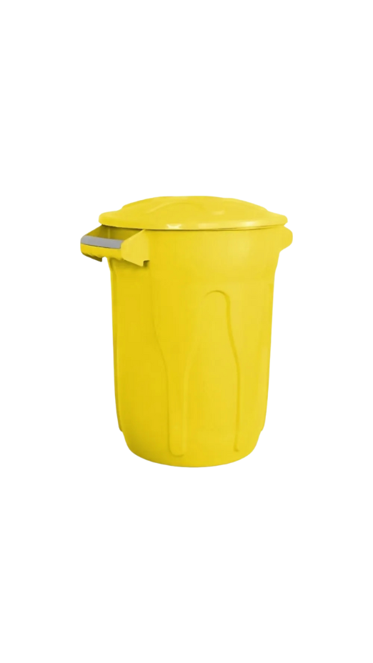 Lixeira cesto de 100 litros na cor amarela, com tampa, fabricada pela JSN. Robusta, prática e ideal para ambientes que exigem organização e coleta seletiva.