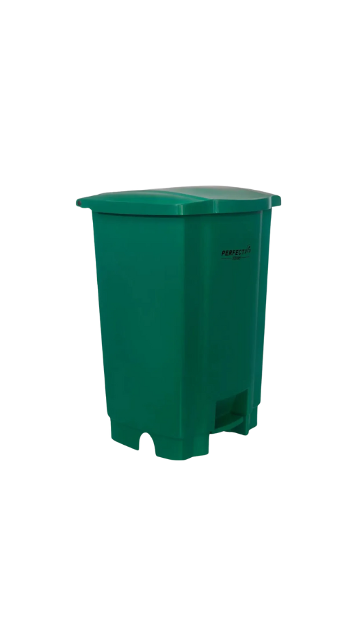 A lixeira de 100 litros com pedal Perfect na cor verde é fabricada em polietileno de alta resistência, com estrutura reforçada que garante durabilidade e segurança no uso diário. O sistema de pedal permite abertura sem contato com as mãos, promovendo mais higiene. Ideal para coleta seletiva de materiais recicláveis, especialmente vidro, conforme o padrão de cores.
