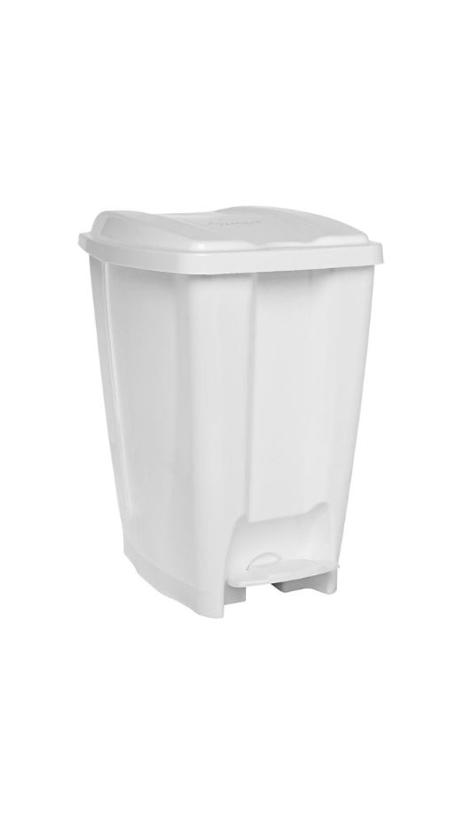 Lixeira retangular branca com capacidade de 20 litros, equipada com pedal para abertura prática e higiênica.