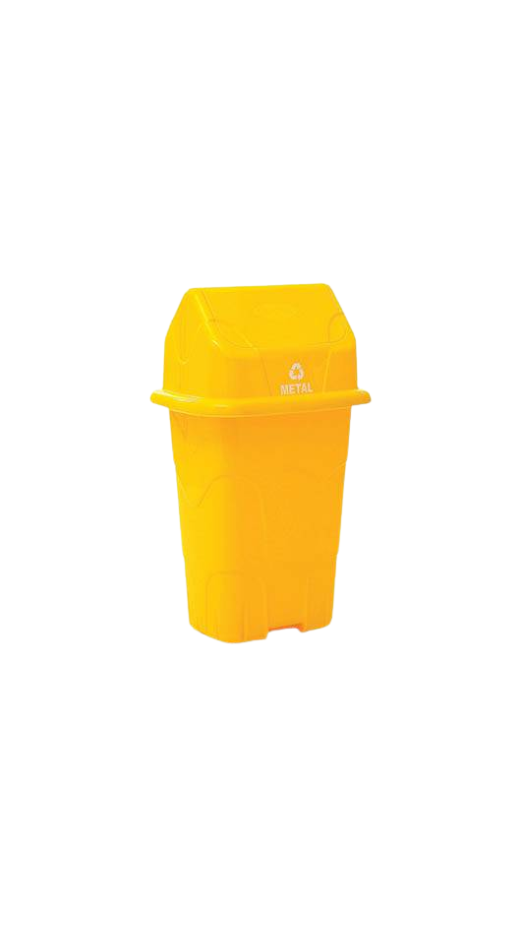 Lixeira basculante com capacidade de 50 litros na cor amarela. Fabricada em material resistente, ideal para coleta seletiva de metais.