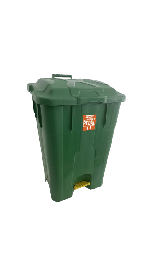Lixeira com pedal, capacidade de 60 litros, na cor verde. Ideal para coleta seletiva ou descarte de resíduos específicos.