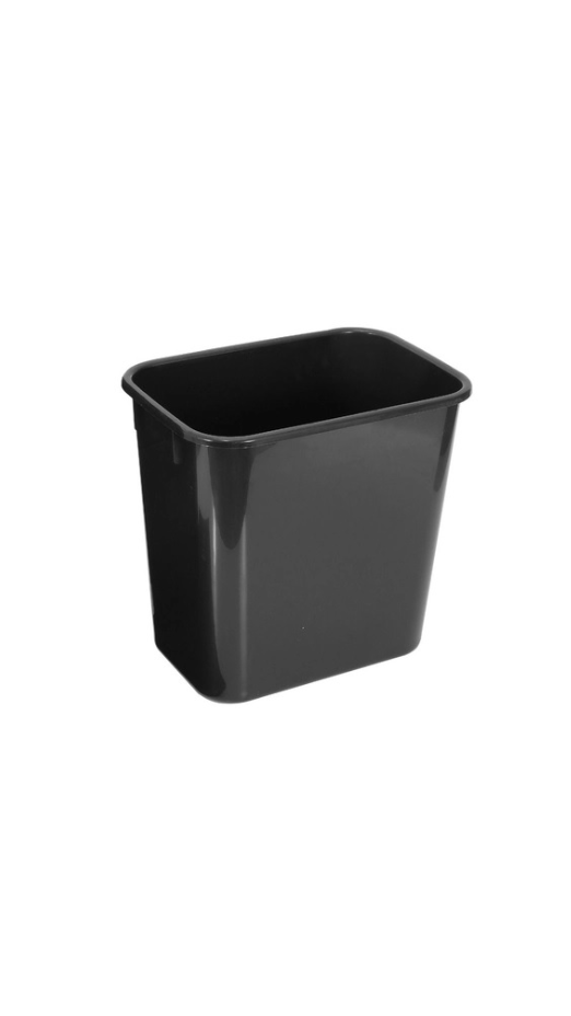 Lixeira papeleira plástica 12 litros, formato retangular, na cor preta. Ideal para ambientes corporativos, residenciais e comerciais.