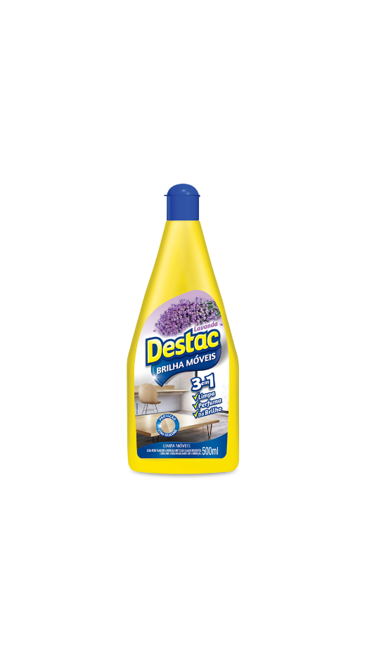 O Lustra Móveis Destac 500ml da Reckitt Benckiser foi desenvolvido para cuidar dos móveis com eficiência. Sua fórmula forma uma camada protetora que realça o brilho natural das superfícies e ajuda a proteger contra poeira, manchas e pequenas marcas do dia a dia. Além de proporcionar um brilho duradouro, perfuma o ambiente com uma fragrância suave e agradável, tornando os espaços mais acolhedores e bem cuidados.