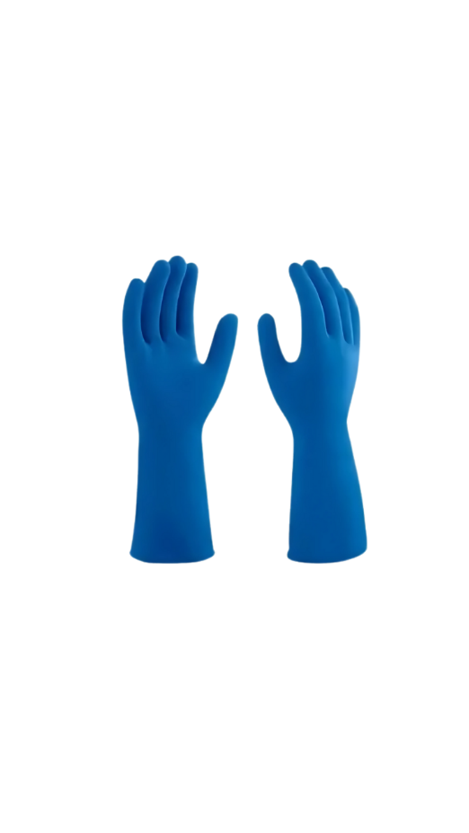 Luva de limpeza em látex natural, resistente e confortável, ideal para proteger as mãos durante atividades domésticas e profissionais.