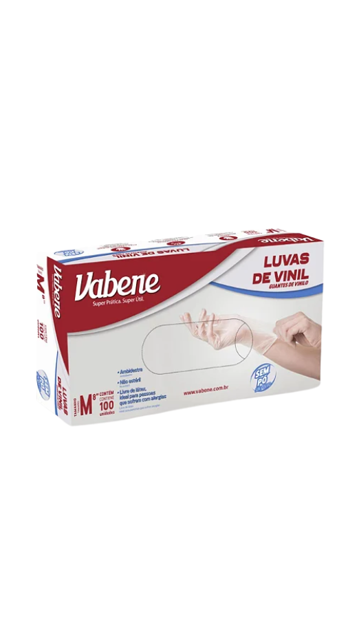 A Luva de Vinil Sem Talco Vabene Tamanho M com 100 unidades oferece segurança e praticidade no uso diário em diversos segmentos. Fabricada em vinil (PVC), é livre de látex e de talco, sendo uma excelente opção para quem possui sensibilidade ou alergia. Com boa resistência e flexibilidade, é indicada para estética, manipulação de alimentos, laboratórios, saúde e limpeza leve. Seu toque liso proporciona facilidade no manuseio de objetos, com conforto e ajuste adequado às mãos.
