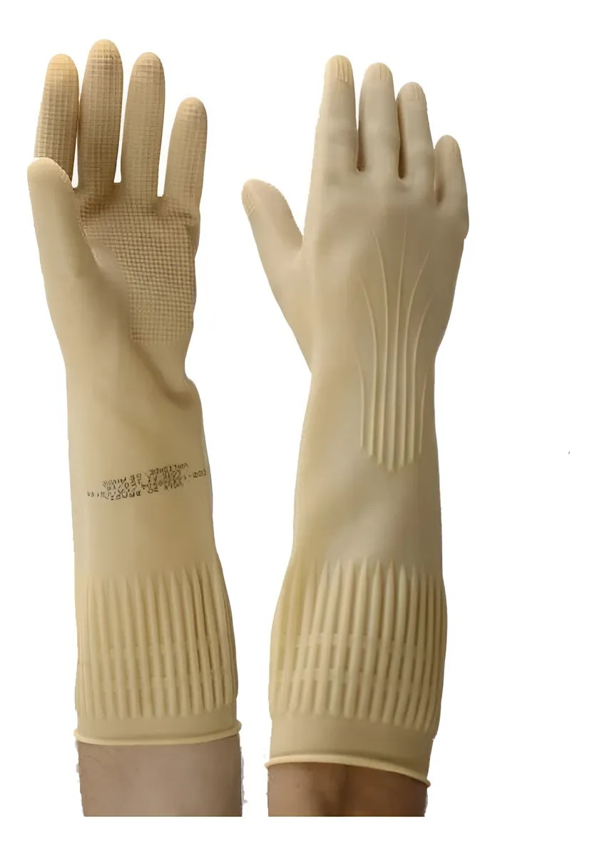 Luva de segurança confeccionada em látex natural, relevo antiderrapante na palma e ponta dos dedos, detalhes de ranhura no punho. Especificações ISO 374-5 – Aprovado para proteção contra fungos e bactérias. Tamanhos: 7(P) 8(M) 9(G) 10(EG) Comprimento: *7(P): 32 cm / 8(M): 39 cm / 9(G): 40 cm / 10(EG): 42 cm Uso: Reutilizável Formato: Anatômico Estrutura: Sem Suporte Têxtil Acabamento interno: Clorinado Punho: Virola Grip: Colmeia