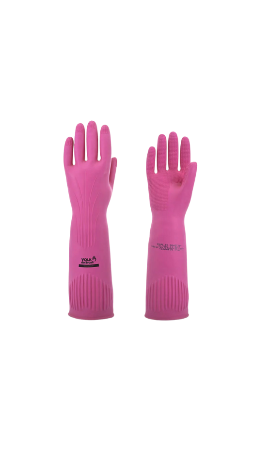 A Luva de Látex Ranhurada Cano Longo M (9) da Volk, na cor rosa, foi desenvolvida para oferecer segurança, conforto e resistência em atividades profissionais. Seu acabamento ranhurado na palma e dedos proporciona excelente aderência em superfícies secas, molhadas ou engorduradas. O cano longo oferece proteção adicional até o antebraço, tornando-a ideal para limpeza pesada, saneamento, manutenção, serviços gerais e agroindústria. Fabricada em látex natural, possui alta resistência mecânica e química, além de contar com certificação CA 36.368, garantindo qualidade e segurança no uso.