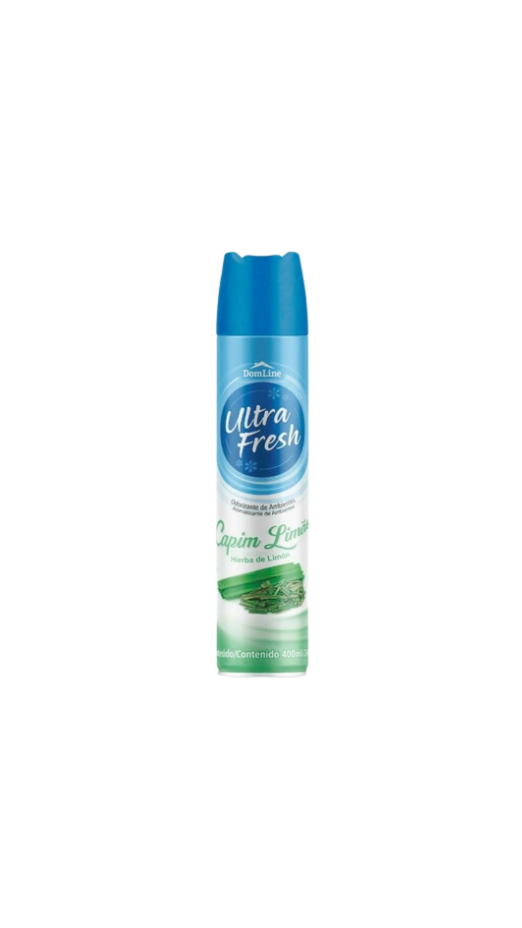 Odorizador de ambientes Ultra com fragrância de capim-limão, em embalagem de 400ml, que proporciona frescor intenso e perfumação prolongada.