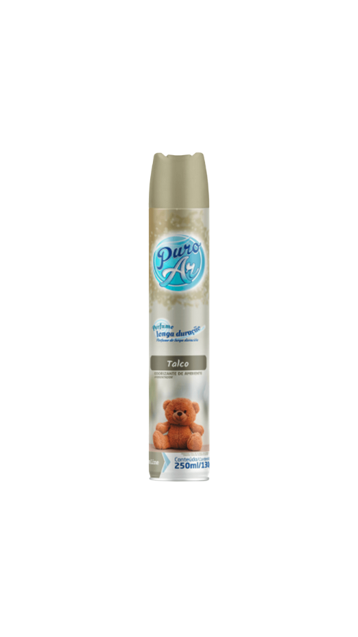 Odorizador de ambientes em spray aerossol, fragrância de talco, embalagem de 250ml. Proporciona perfume suave e agradável, eliminando odores e trazendo sensação de limpeza.
