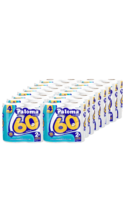 O Papel Higiênico Paloma 16x4x60m é uma escolha ideal para ambientes que exigem praticidade, rendimento e economia. Cada fardo contém 16 pacotes com 4 rolos cada, totalizando 64 rolos, com 60 metros por rolo. Produzido com celulose reciclada, oferece boa resistência, absorção e suavidade ao toque. É especialmente indicado para locais com grande fluxo de pessoas, como empresas, escolas, indústrias e estabelecimentos comerciais, reduzindo a frequência de reposição.