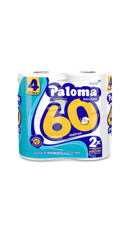O Papel Higiênico Paloma 4x60m é uma opção econômica e prática para quem busca maior rendimento com um excelente custo-benefício. Composto por 4 rolos de 60 metros cada, oferece o dobro da metragem dos rolos convencionais, reduzindo a frequência de reposição. Fabricado com celulose reciclada, possui folha simples com boa resistência e toque suave. É ideal para residências, escritórios, consultórios e pequenos comércios.