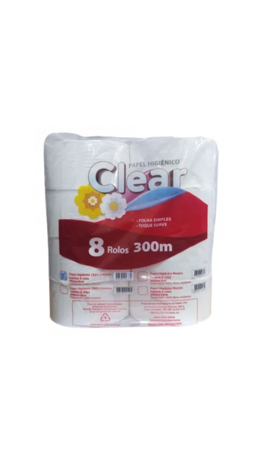 PAPEL HIG ROLAO 8X300MT 100% CELULOSE CLEAR
